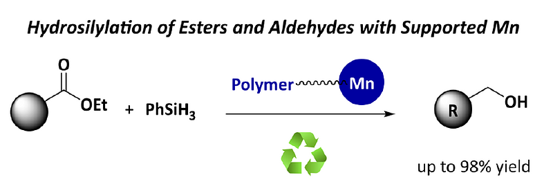 title = {Polymer-supported manganese-catalysed transformation of esters and aldehydes to alcohols},
